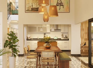 Design contemporain authentique avec des matériaux et des meubles locaux.
