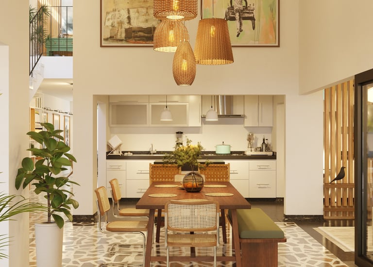 Ambiance chaleureuse avec un design élégant, minimaliste et sophistiqué.